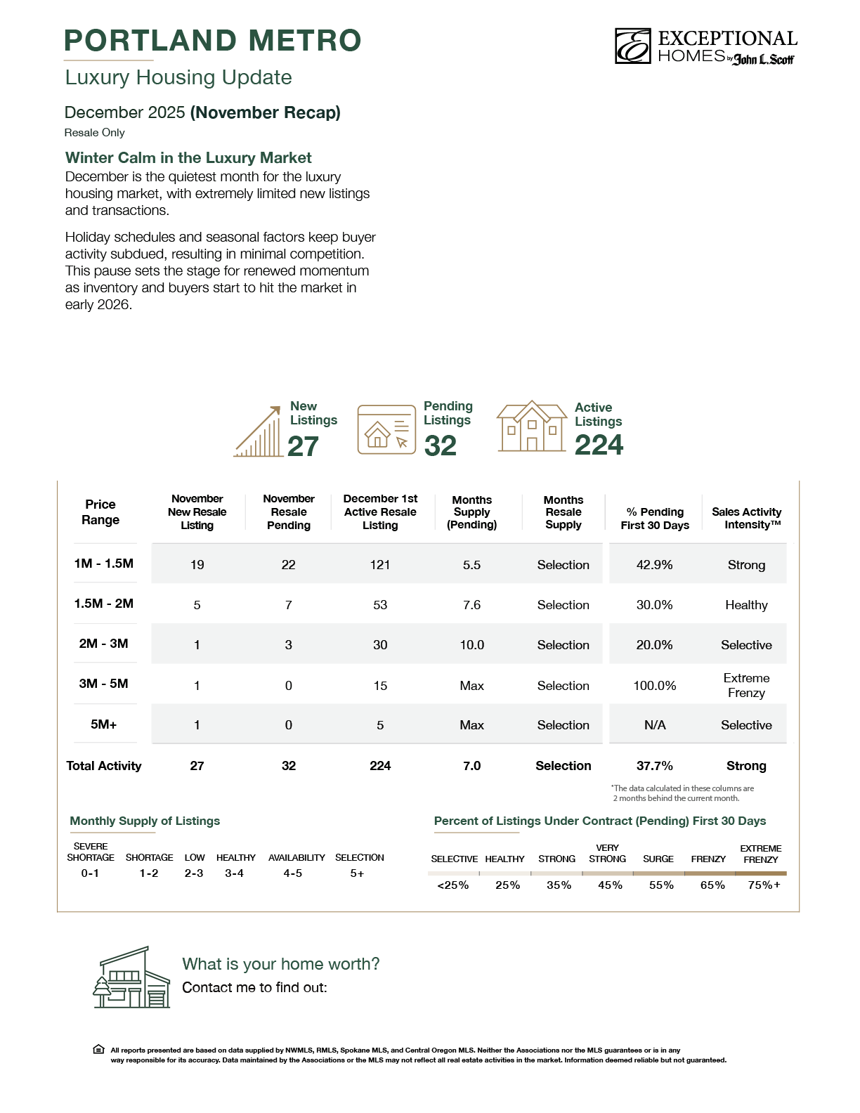 Holiday schedules and seasonal factors keep buyer activity subdued, resulting in minimal competition. This pause sets the stage for renewed momentum as inventory and buyers start to hit the market in early 2026.
